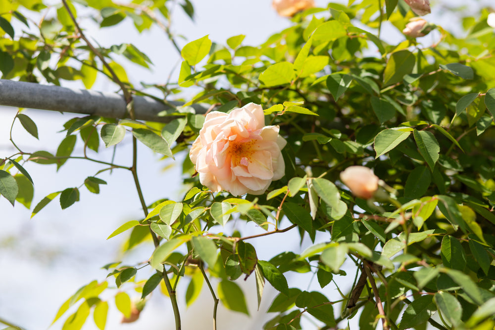 French for "dream of gold", this lovely, graceful climber lives up to its name with ease. It is especially recommended for use on porch pillars, where the pendulous, globular flowers can be seen and appreciated more easily. Once trained up and established ‘Rêve d’Or’ will display for its admirers a wealth of large, loosely double, buff yellow roses with a rich Noisette perfume. It blooms all season, but we enjoy its fall performance best.