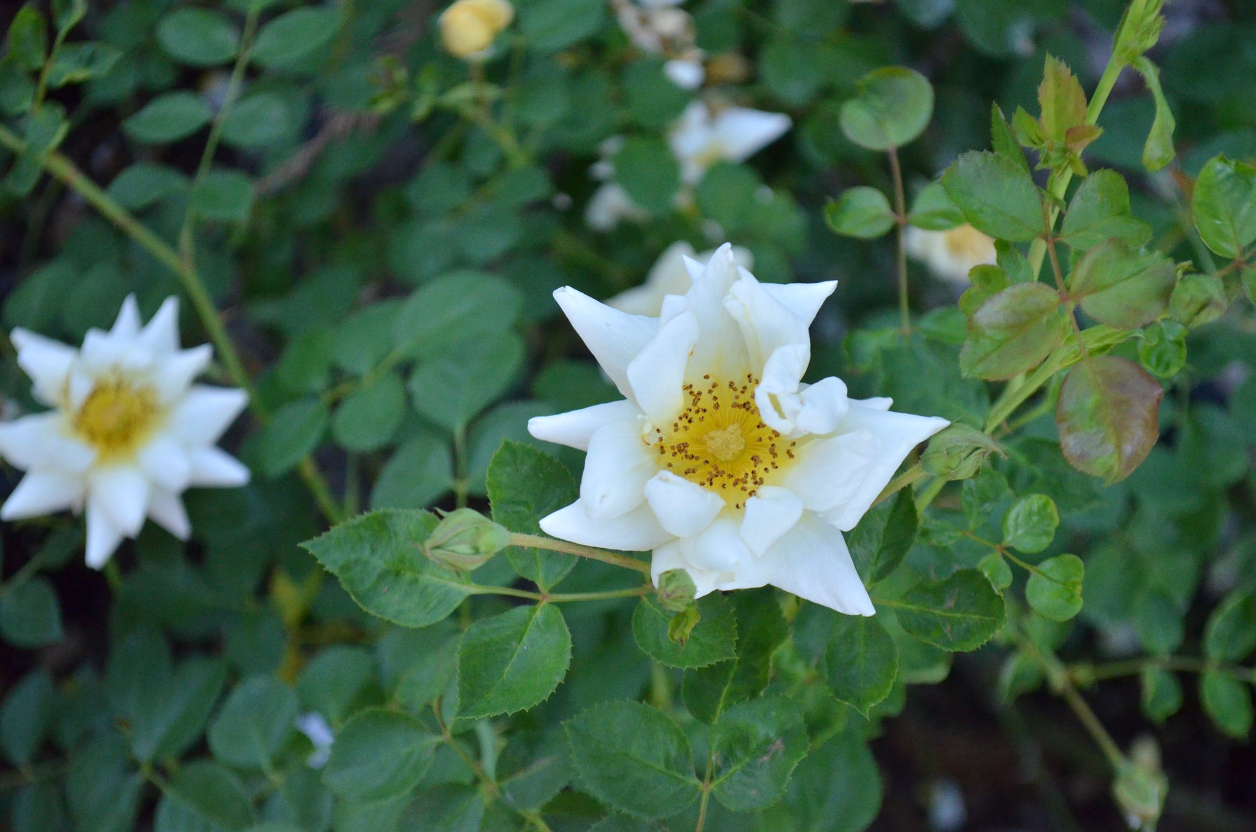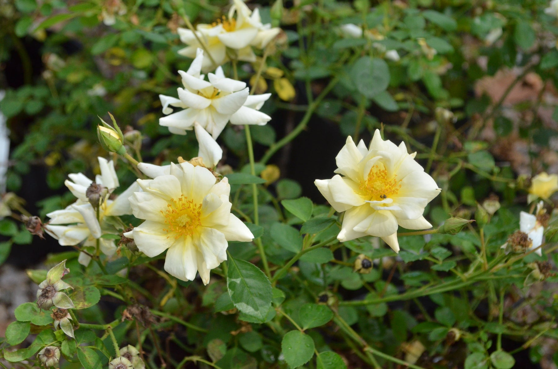 The small leaves and spreading habit of 'Republic of Texas' makes it a natural for container planting. It is also exceptional when placed in the border with perennials. The choice is yours. The rose repeats throughout the year with 2 inch semi-double yellow flowers.
