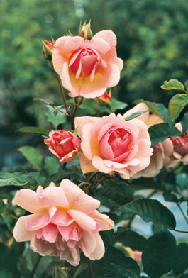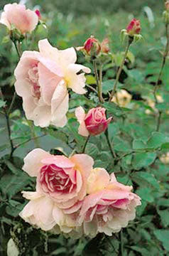 Fully double flowers of apricot pink fading to cream grace this medium-sized shrub or pillar rose. 'Felicia' is very generous with her blooms, which have one of the most intense fragrances in its class, making it an excellent cut flower. The moderate size allows it to be grown in a large container or planted as a specimen in a more restricted area. If grown as a climber, this rose will reach 8 to 10 feet.