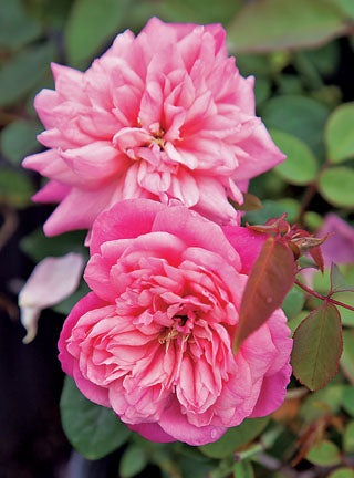 Handsome and distinctive, this large, upright shrub bears flowers that are a mixture of pale rose, salmon and purple. Fully open flowers of 'Monsieur Tillier' are compact and attractive, flat and very double with petals that are often imbricated. Its rich and unique fragrance is like a spicy herbal tea - very relaxing!