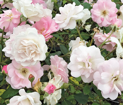 We get great enjoyment from watching this large flowering Polyantha rose to bloom its heart out for us in our growing field. The cupped, semi-double, bright rose-pink blooms of 'Mrs. R. M. Finch' are borne in delicate clusters and fade to a light pinkish-white with age. The fragrance is light and clean. Bushy and vigorous in growth habit, this rose shows no evidence of disease problems.