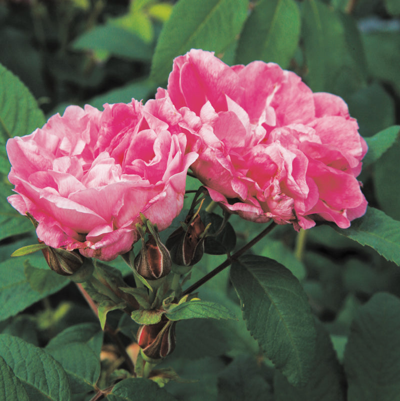 Although 'Therese Bugnet' is not typical of the class because of its darker leaves and more upright form, this is indeed an extremely hardy rose. With its clear, double, rose-red flowers that pale to pink, this fragrant rose is perfect for a large hedge. Its reddish stems are a nice winter accent.
