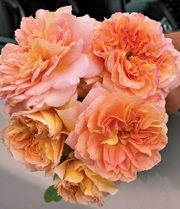 'Brazos Belle' is a very showy shrub to five feet with double orange/pink flowers that repeat throughout the season. This rose is ideally planted as a border specimen.