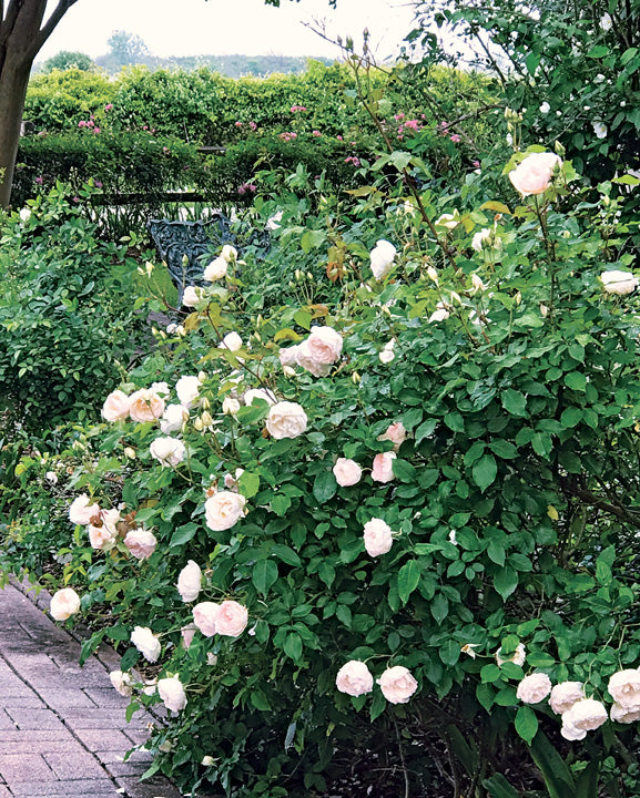 This beautiful rose is the evident result of Mons. Lacharme’s attempt to breed a pure white rose. He didn’t quite succeed with 'Coquette des Blanches', but he did achieve near perfection. The form of the flower is at once both cupped and flat. Flat, referring to the line that can be drawn across the surface of the bloom, and cupped, being the description of the overall bloom shape. While not completely white, the overall effect in the garden is of a white rose. Yet for many, it is the pink tones of the inner petals on a newly opening bloom that give this rose its greatest beauty. The shrub itself is hardy and vigorous with slender canes that suggest the rose can be grown as a pillar or a pegged rose.