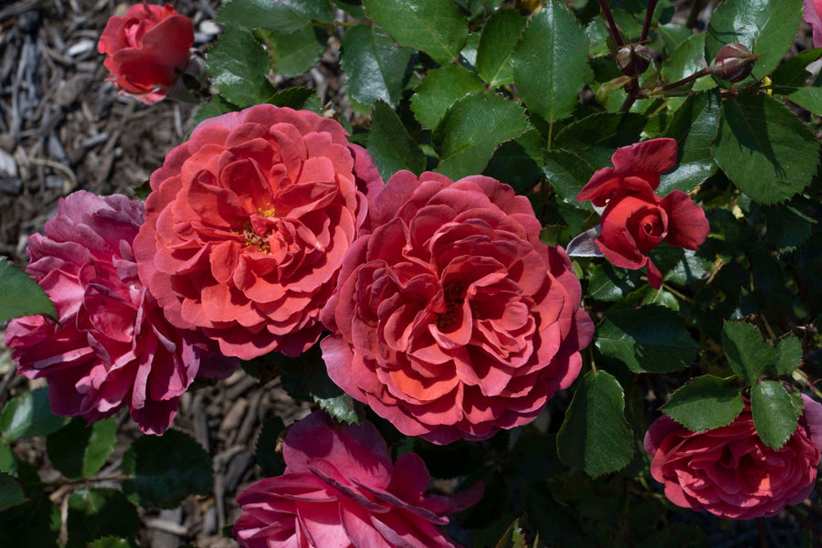 Bring the rich hues of a west coast sunset to your garden with Desert Sky. This stunning rose showcases a unique brick-orange bloom kissed with mauve undertones, offering a depth of color unlike anything else in the landscape. A vigorous yet compact grower, this beauty stays tidy in gardens while producing abundant flushes of blooms throughout the season, making it ideal for garden beds or borders.