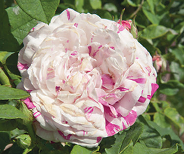 Though classified as a Hybrid Perpetual, one rose authority calls ‘Ferdinand Pichard’ "the last of the Bourbon race." A very unique flower, it is described as a pale blush striped crimson in a cupped, double bloom. The foliage is a pale lettuce green and the bloom has a very sweet scent. Striped and mottled roses might sound quite vulgar, but "in person" they are very attractive and desirable.