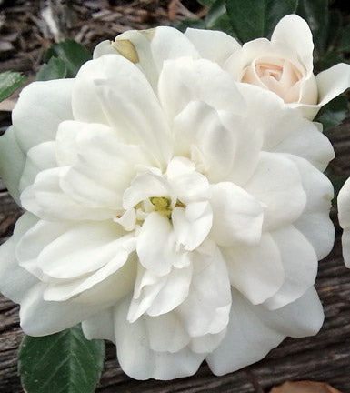'Sea Foam' can be grown as a mannerly climber or, because of its semi-prostrate habit, can be grown as a trailer. The choice is yours. Double, creamy-white flowers of slight fragrance handsomely decorate the dark, glossy foliage of this vigorous rose. A perfect candidate for a white garden because the lovely blooms reflect light well at night.