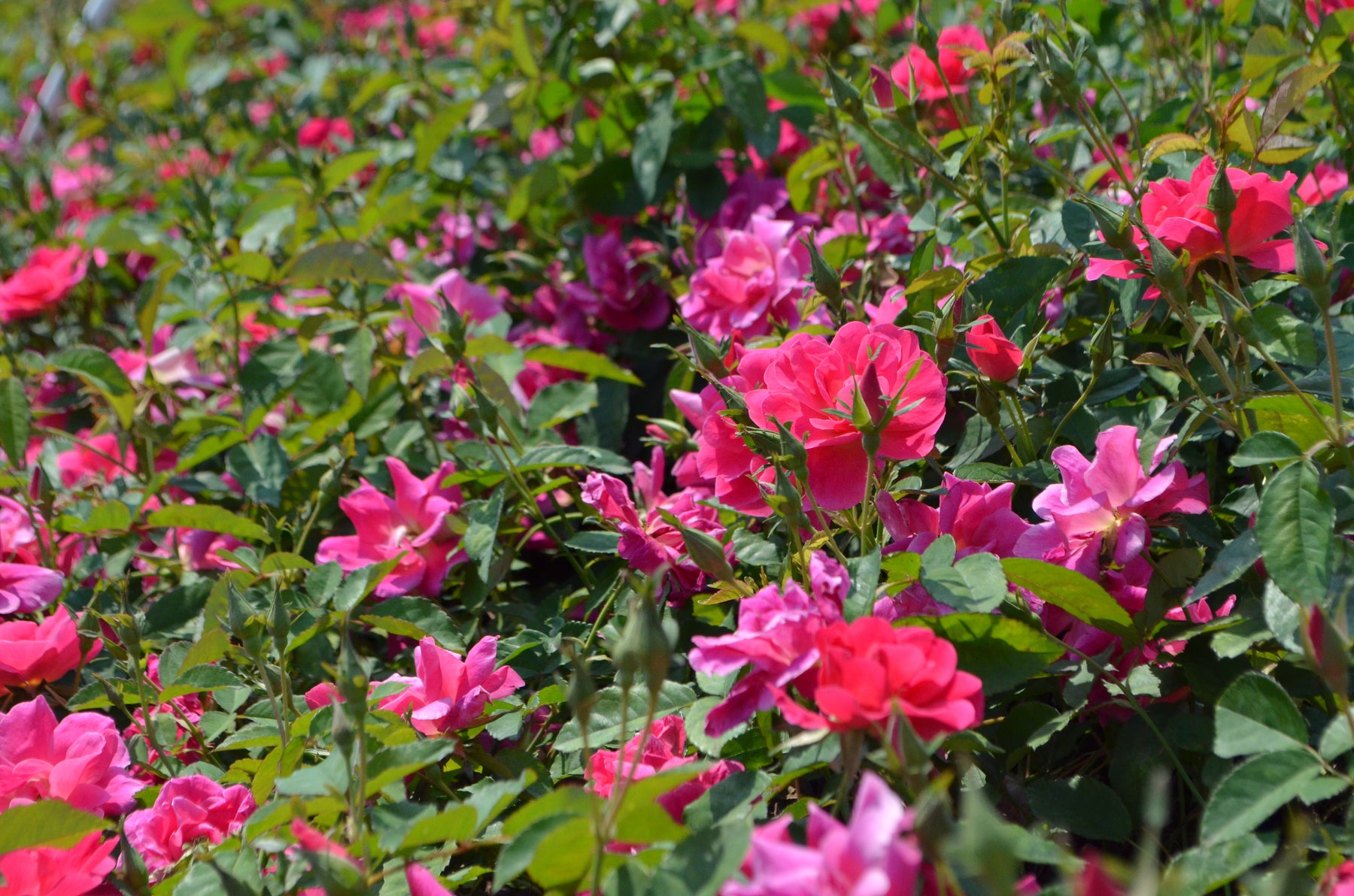 'Thomas Affleck' was bred at our nursery and named in honor of a notable 19th century nurseryman who had a nursery just a few miles from ours. The intensely cerise pink, semi-double blooms make a bold statement in the garden. It is a wonderful specimen for a mixed planting or large container and is useful near a walkway where its fragrance and thornless nature can be appreciated.