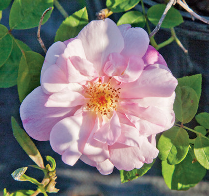 The original plant of "McClinton Tea" from historic Natchitoches, Louisiana, perfumed the entire front of a small cottage garden. The robust, 7-foot tall plant had at least a dozen semi-double, bright pink, heavily Tea-scented flowers when we collected cuttings in mid-December. The reverse of the petals has a darker pink shading that adds a subtle depth to the large flower.