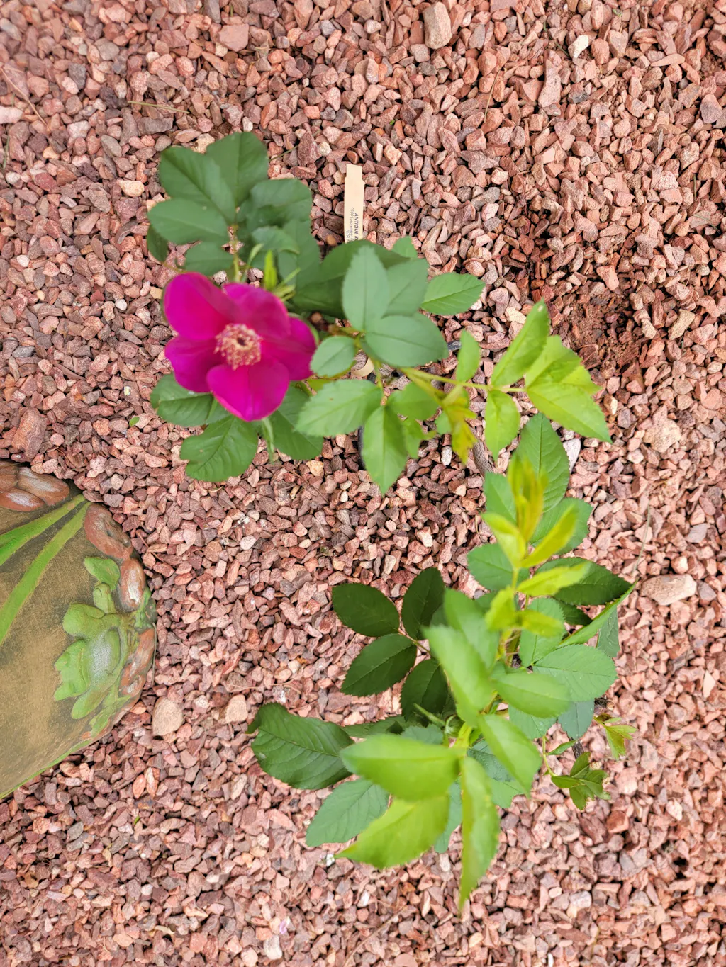 A cross between Rosa rugosa and Rosa foliolosa, this rose is ruggedly hardy, heat tolerant, and well-suited for challenging climates. Its rough-textured foliage and prickly canes add to its durability, while its tendency to sucker on its own roots makes it a strong, enduring presence in the landscape.