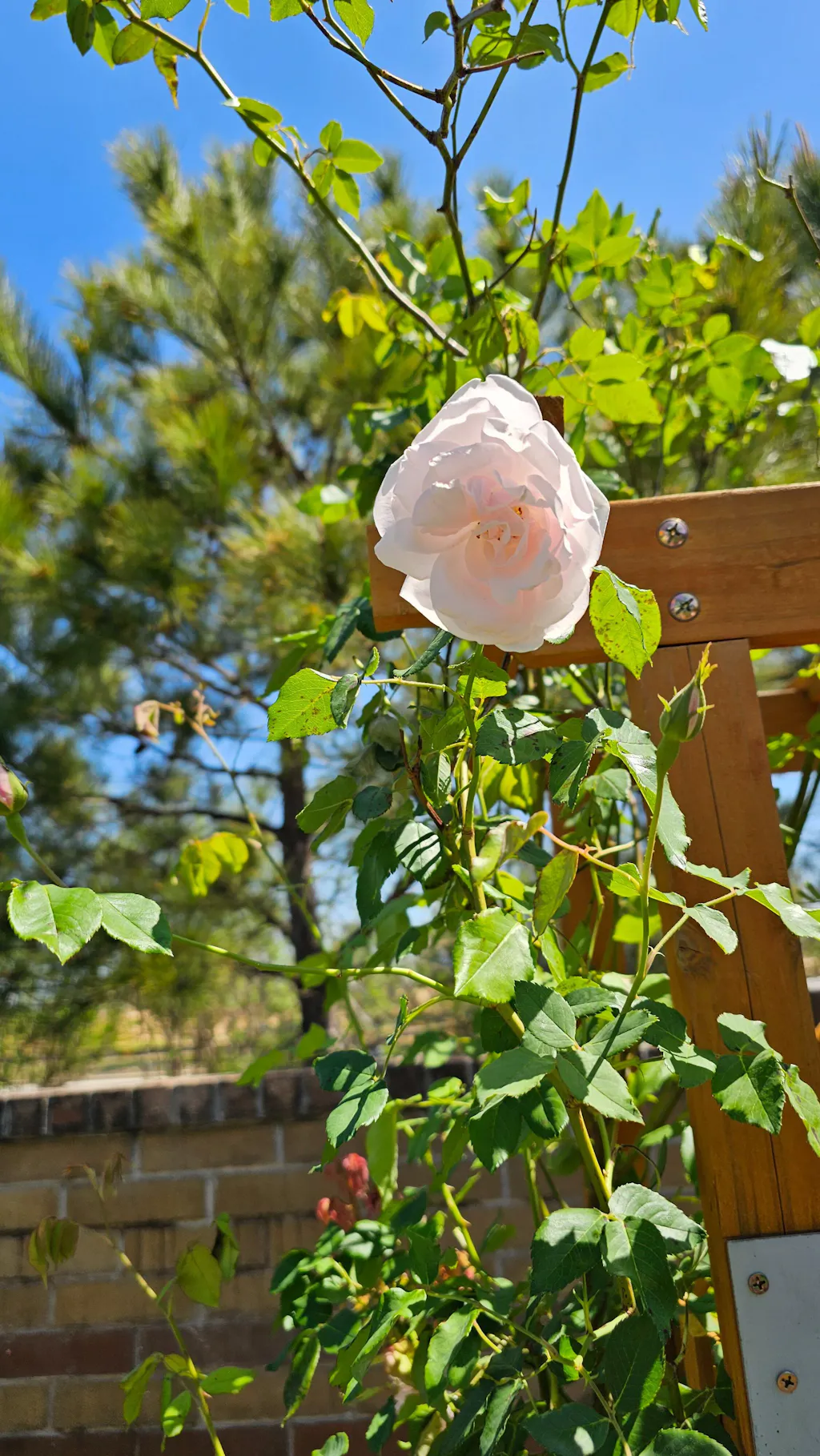 Though classed as a Noisette, the full blooms of this rose are more of a Bourbon or Hybrid Tea in shape. The flowers are intensely fragrant, cupped, and double opening the palest of pinks, then cooling to creamy white. Vigorous to about 20 feet and easy to work with, "Madame Alfred" will create a vertical focal point in any garden. Its nearly thornless canes make it a very easy rose to train. We have had flowers from it in January, when it was the only plant in the garden to bear a bloom.