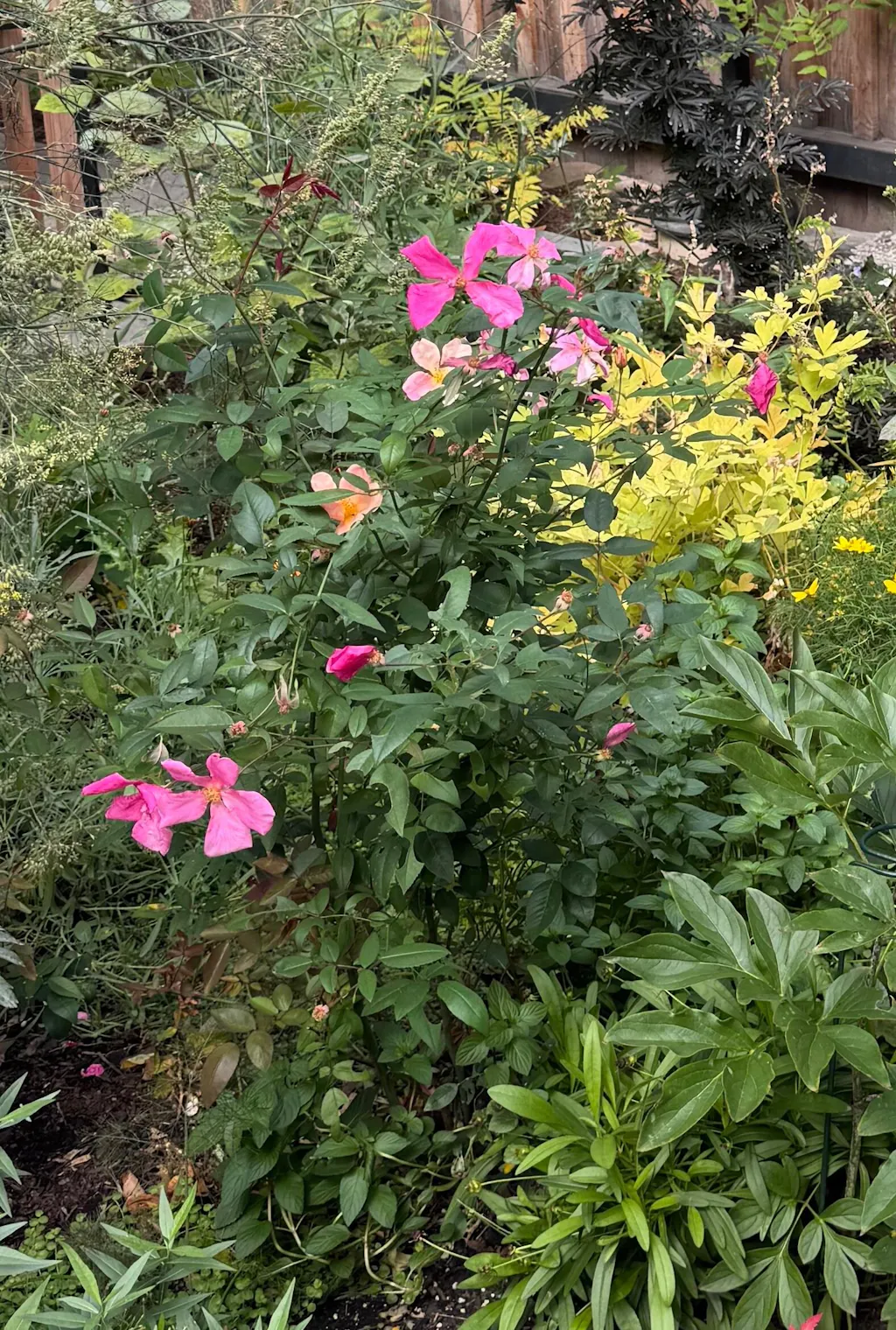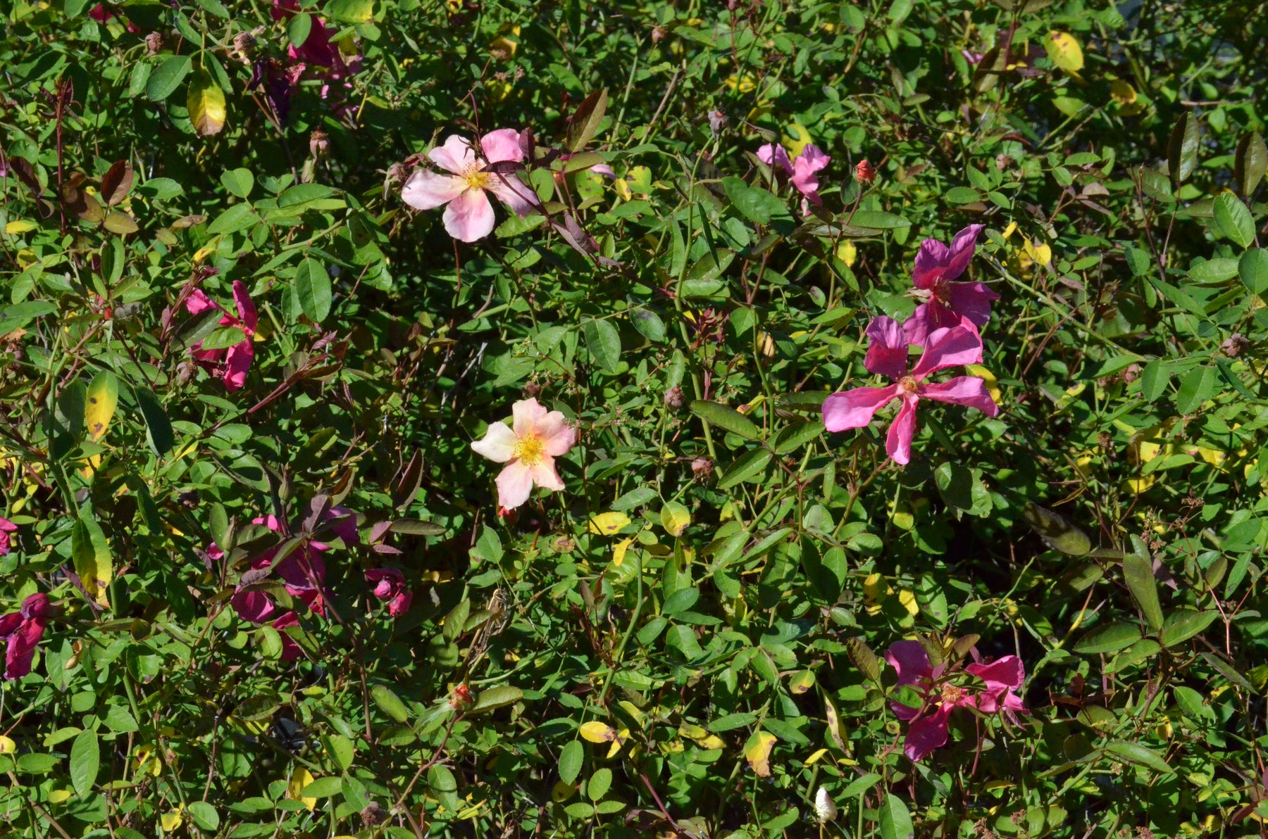 This most interesting rose was once sold as ‘Tipo Ideale’, and it is ideally suited to illustrate the typical China trait of darkening with age, instead of fading. Nowhere is that trait more visible than in the flowers of ‘Mutabilis’, whose single petals open sulfur yellow, changing through orange to a rich pink and finally crimson. Bright, silky flowers of all these colors will often be on display at the same time, looking as if a group of multi-colored butterflies has settled on the bush. This aspect earned ‘Mutabilis’ its common name–"The Butterfly Rose".