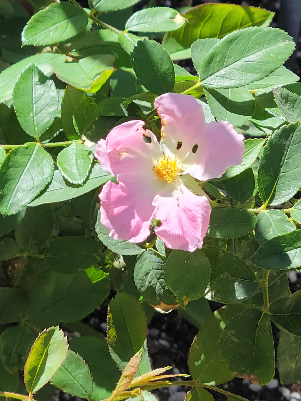 'Nearly Wild' is a cheery rose and sure to brighten any space in the garden. Small, tapered, yet pointed buds open to five-petaled rose-pink blooms reminiscent of apple blossoms. The bush is ideally suited as a low hedge if planted closely together, as it is compact, full, and almost always in bloom. We have seen beautiful mass plantings of this rose in the East.
