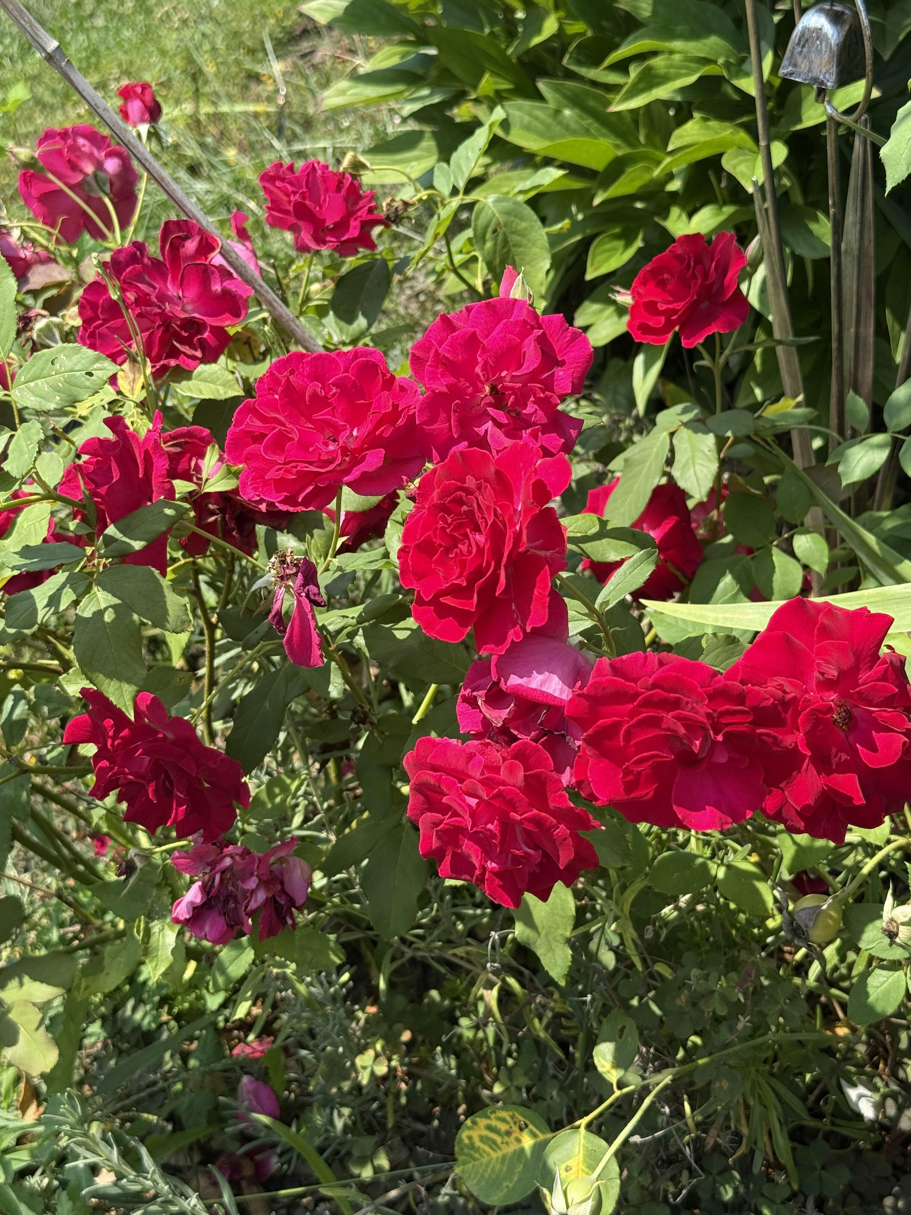 ‘Valentine’s’ long pointed buds open to velvety, semi-double flowers of rich scarlet that can be 3 or 4 inches across on a mature plant. The nearly thornless bush is slightly open. The foliage is very full and rich and is rarely affected by heat, humidity, insects, or disease. This is a rose grown for show and will attract considerable attention. ‘Valentine’ is one of our most popular red roses.